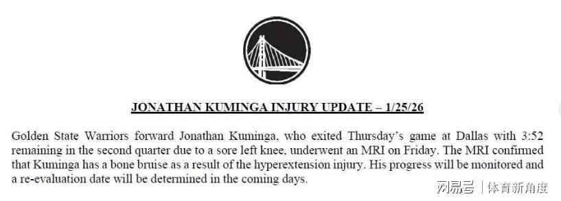 之前啊,巴特勒受伤,库明加这小子闹完别扭终于肯上场打球了,本以为能好好表现一番,结果才打了2场就又受伤了。今天勇士官方正式宣布,库明加这左膝过度伸展,都搞出骨挫伤了,具体啥时候能再上场,那得等过几天复查之后才能知道。这交易截止日眼看着就剩没几天了,您说这库明加还能像商品一样被“打包”交易出去吗?